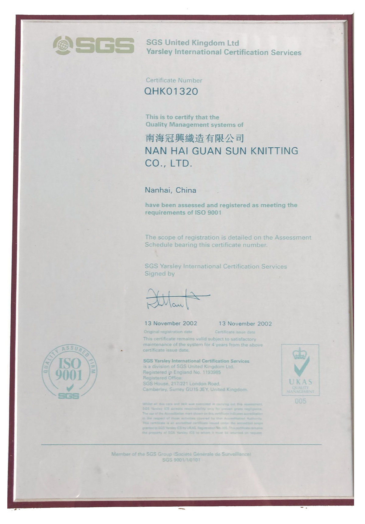 SGS證書